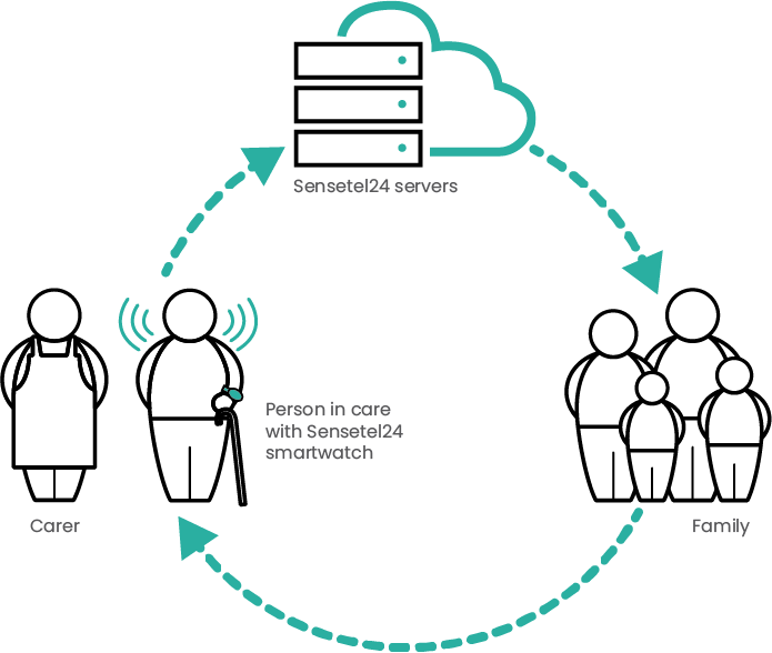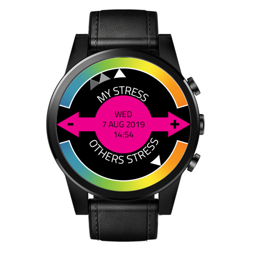 When used in 'Family' mode it can inform and alert you about the interplay of stress, depression and anxiety between your family member and you and the other carers affecting their mental wellbeing: giving early warning of trend changes in stress levels of the person wearing the Sensetel 24 smartwatch paired with your mobile. As long as there is an internet or GSM signal these two paired devices could be on opposite sides of the globe, making distance care a much easier task.